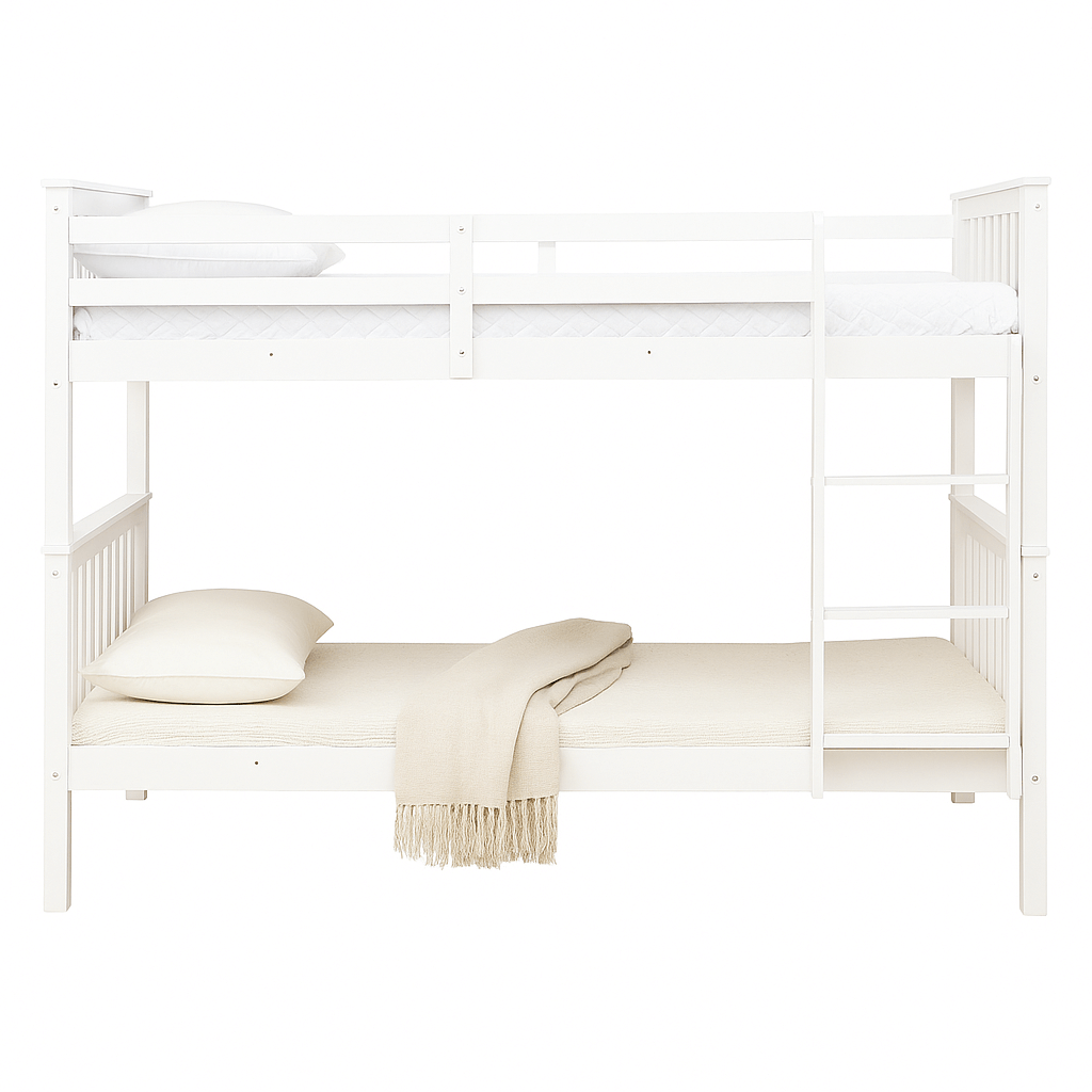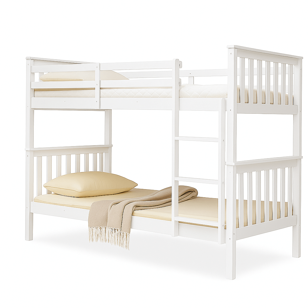 Bring home the perfect balance of safety, style, and practicality with the Baileys Comfort single wooden bunk bed with mattress — a long-lasting solution for families who value comfort and smart design. Contact us to learn more.
