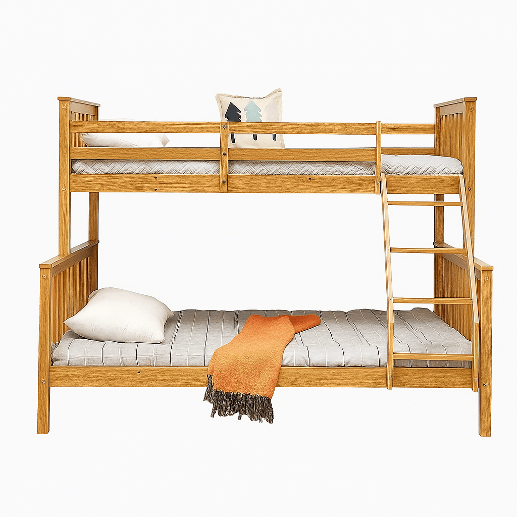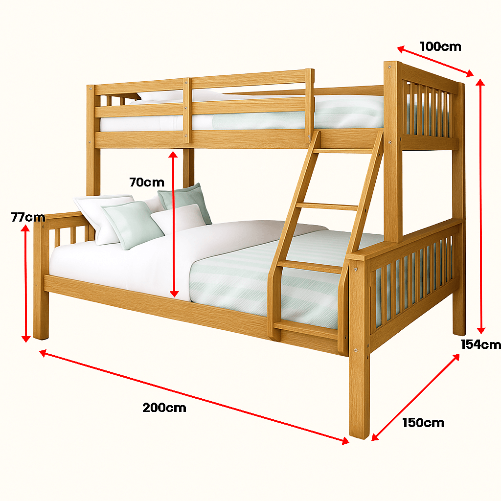 Premium Trio Wooden Bunk Bed Frame – Double Below, Single Above