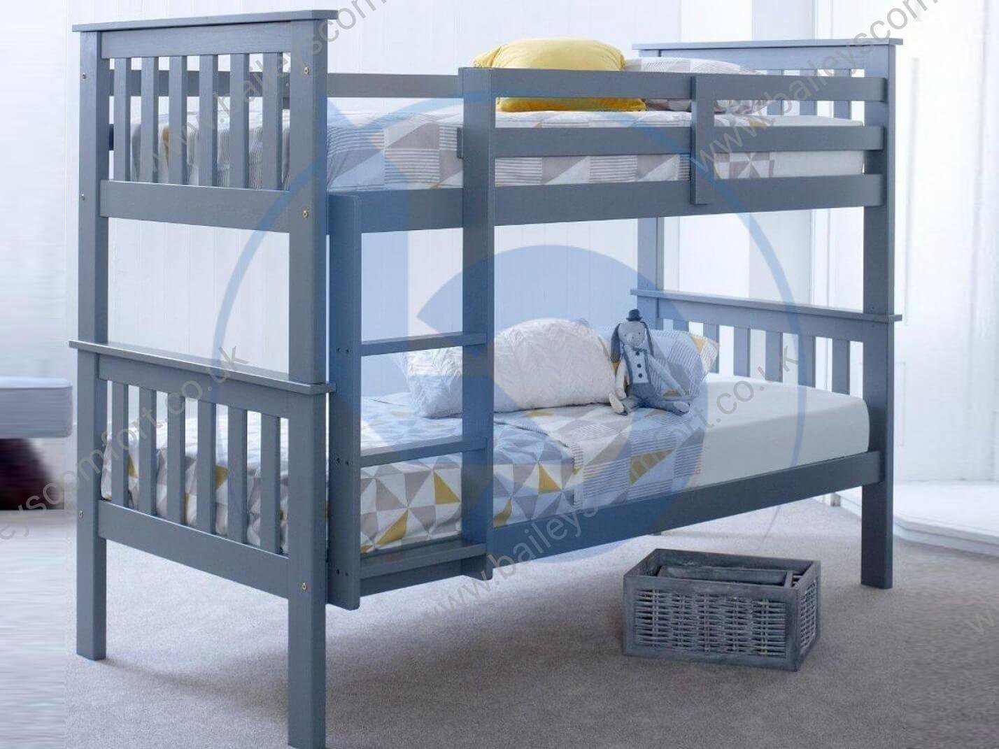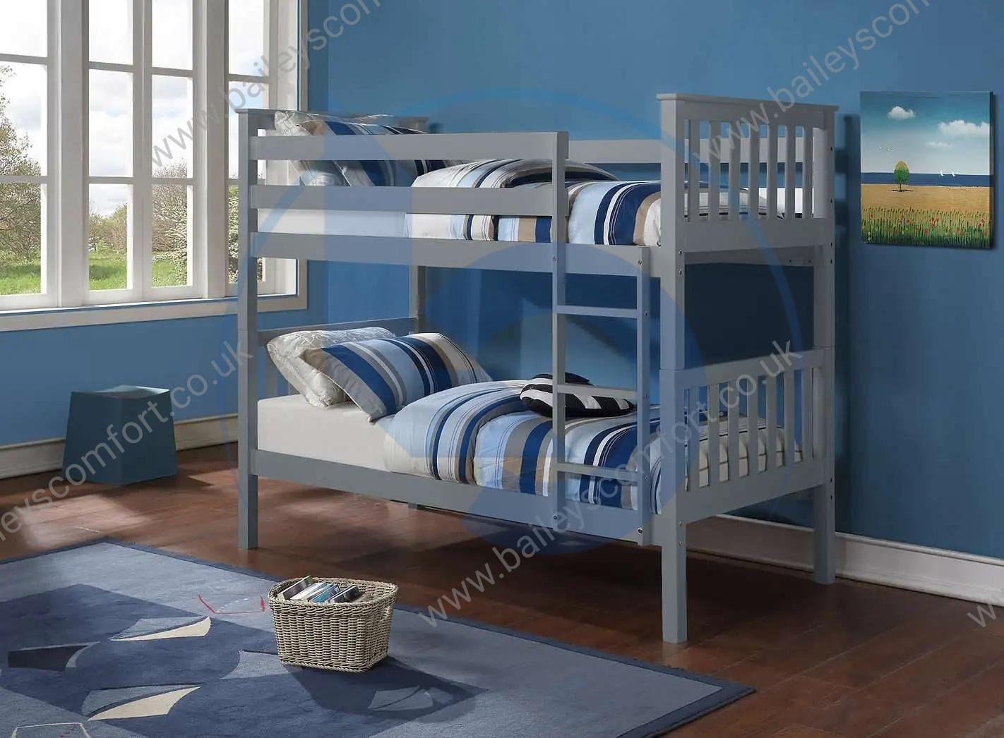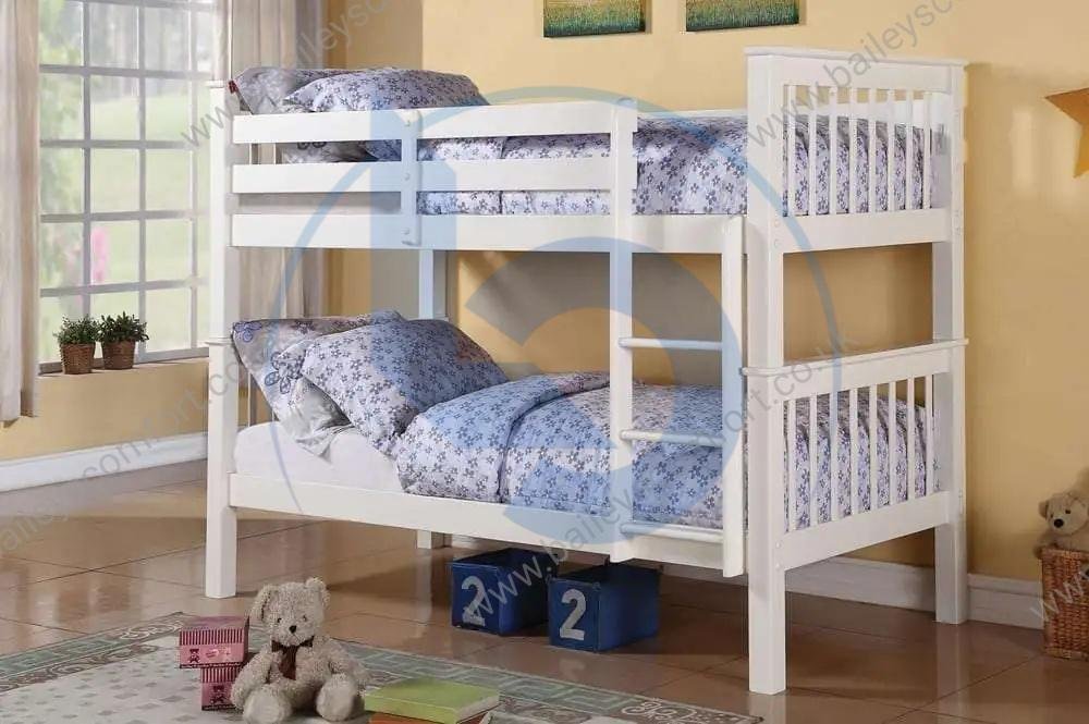 • Safety Features: Includes wooden rails and a ladder for safe access to the top bunk.